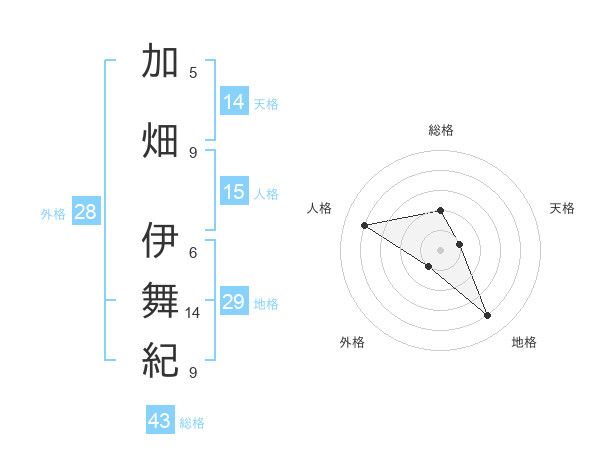 加畑 伊舞紀さんを姓名の画数から五運を鑑定