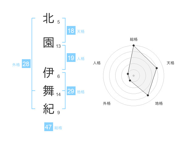 北園 伊舞紀さんを姓名の画数から五運を鑑定