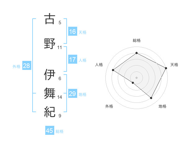 古野 伊舞紀さんを姓名の画数から五運を鑑定