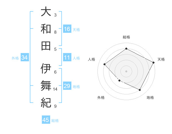 大和田 伊舞紀さんを姓名の画数から五運を鑑定