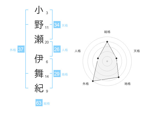 小野瀬 伊舞紀さんの外格は37画の5点!