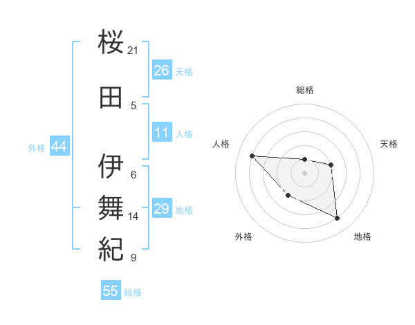 桜田 伊舞紀さんを姓名の画数から五運を鑑定