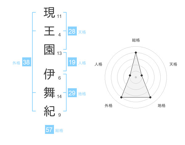 現王園 伊舞紀さんを姓名の画数から五運を鑑定
