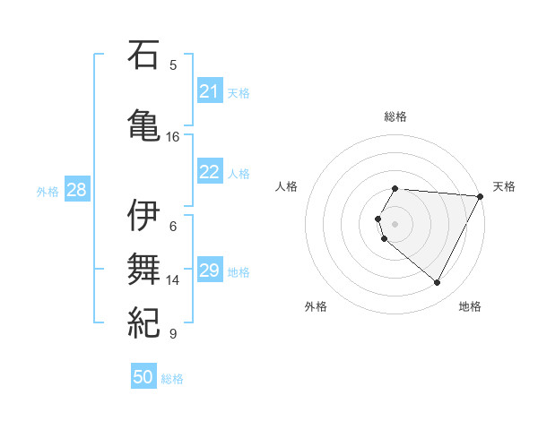 石亀 伊舞紀さんを姓名の画数から五運を鑑定