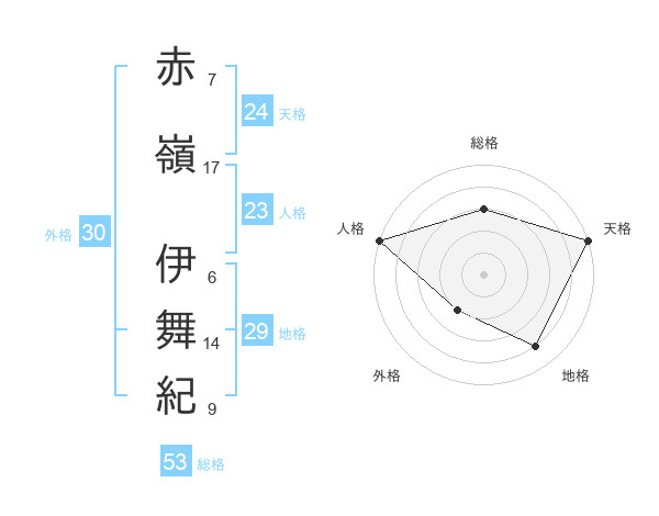 赤嶺 伊舞紀さんの総格は53画の3点!