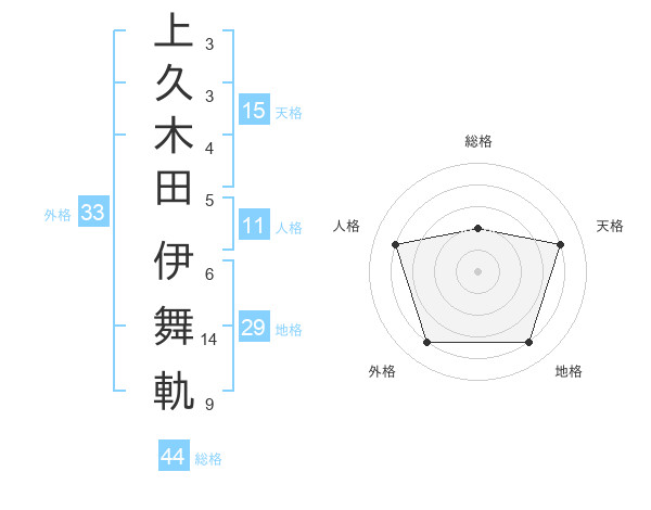 上久木田 伊舞軌さんを姓名の画数から五運を鑑定