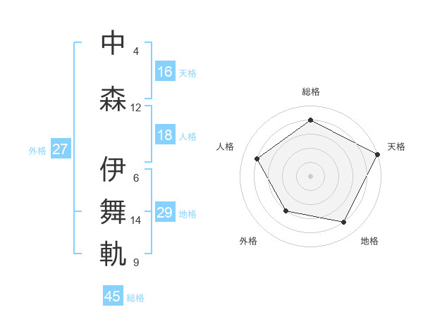 中森 伊舞軌さんの総格は45画の4点!