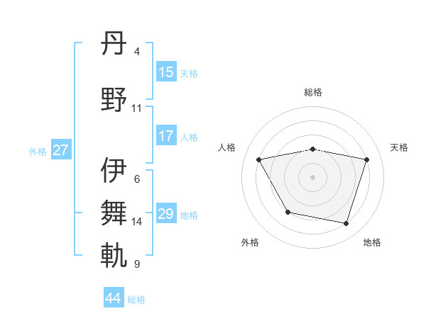 丹野 伊舞軌さんを姓名の画数から五運を鑑定