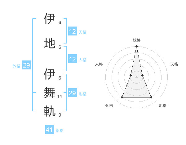 伊地 伊舞軌さんの総格は41画の5点!