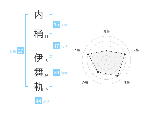内桶 伊舞軌さんを姓名の画数から五運を鑑定