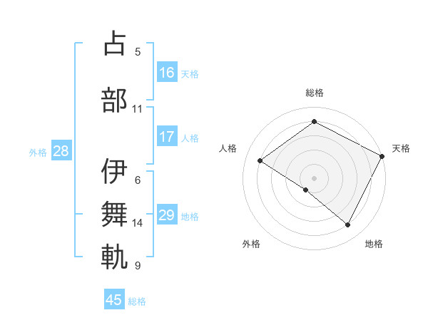 占部 伊舞軌さんを姓名の画数から五運を鑑定