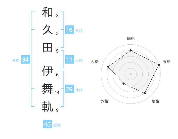 和久田 伊舞軌さんを姓名の画数から五運を鑑定