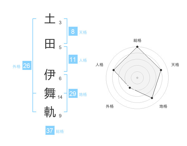 土田 伊舞軌さんを姓名の画数から五運を鑑定