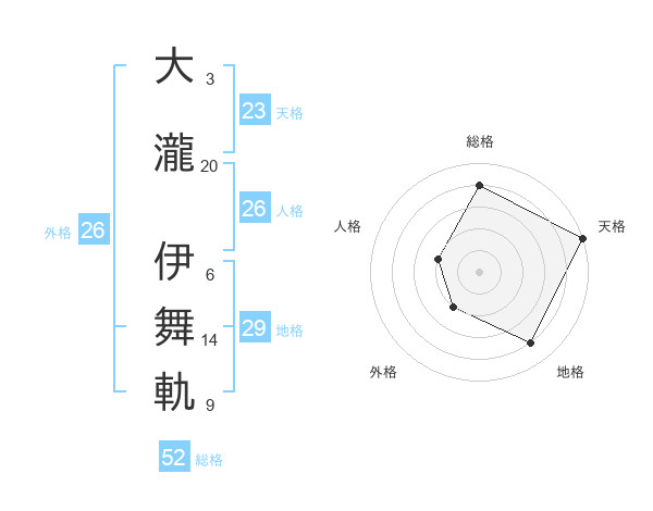 大瀧 伊舞軌さんを姓名の画数から五運を鑑定