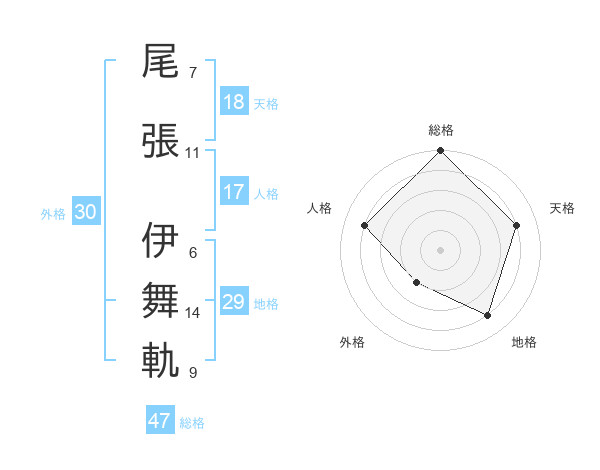 尾張 伊舞軌さんを姓名の画数から五運を鑑定
