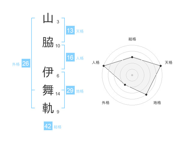 山脇 伊舞軌さんの総格は42画の3点!