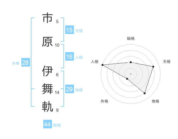 市原 伊舞軌さんを姓名の画数から五運を鑑定