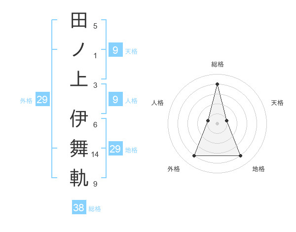 田ノ上 伊舞軌さんの総格は38画の4点!