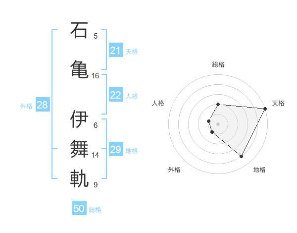 石亀 伊舞軌さんを姓名の画数から五運を鑑定