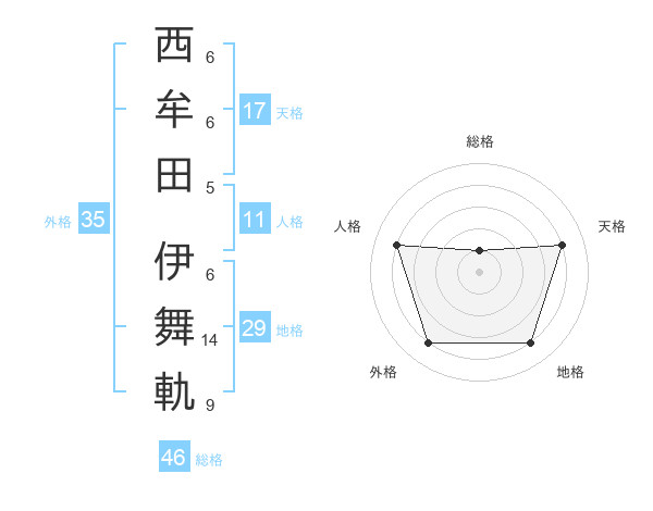 西牟田 伊舞軌さんを姓名の画数から五運を鑑定