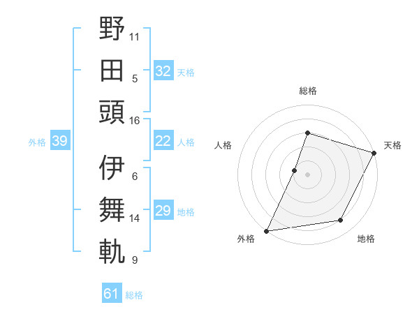 野田頭 伊舞軌さんを姓名の画数から五運を鑑定