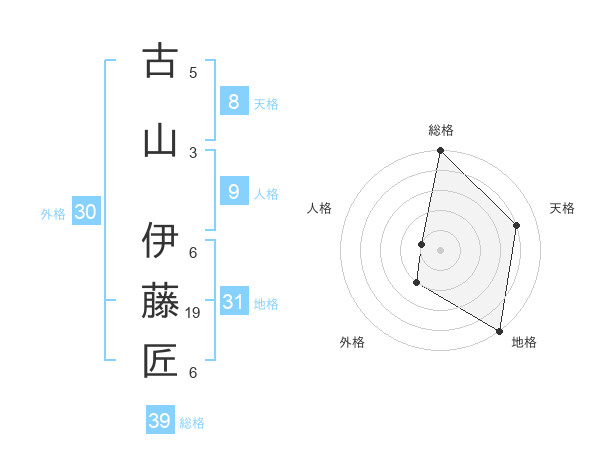 古山 伊藤匠さんを姓名の画数から五運を鑑定