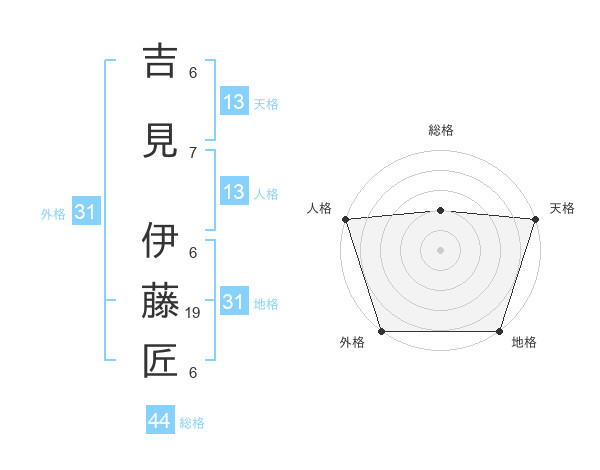 吉見 伊藤匠さんを姓名の画数から五運を鑑定