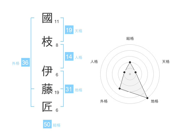 國枝 伊藤匠さんの総格は50画の2点!