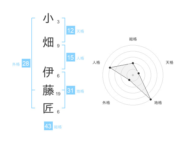 小畑 伊藤匠さんを姓名の画数から五運を鑑定