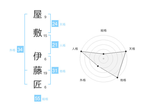 屋敷 伊藤匠さんの総格は55画の1点!