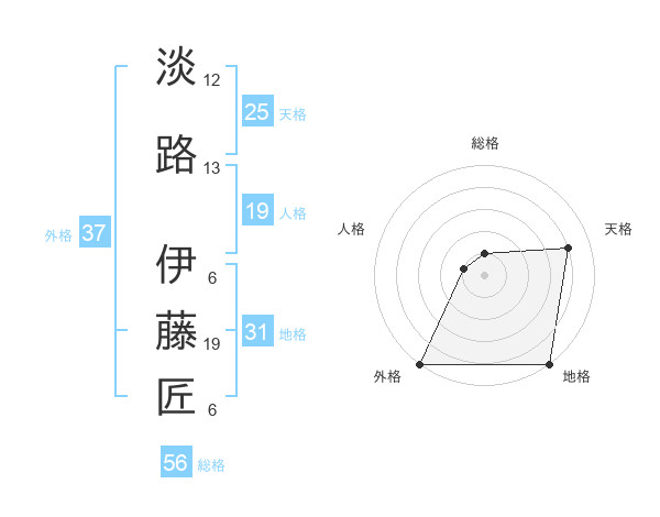 淡路 伊藤匠さんの地格は31画の5点!