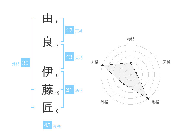 由良 伊藤匠さんを姓名の画数から五運を鑑定