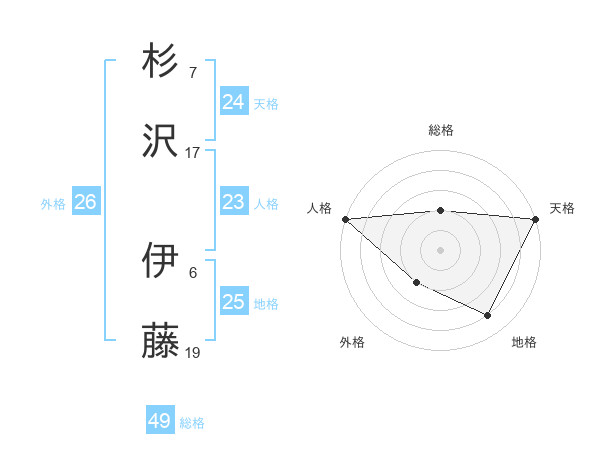 杉沢 伊藤さんの総格は49画の2点!