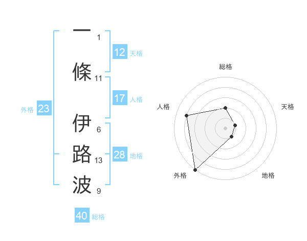 一條 伊路波さんを姓名の画数から五運を鑑定