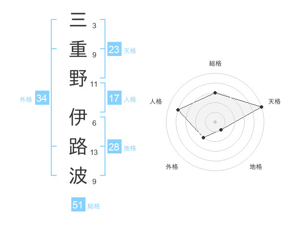 三重野 伊路波さんの総格は51画の3点!
