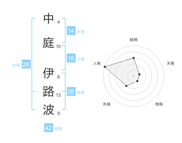 中庭 伊路波さんの総格は42画の3点!