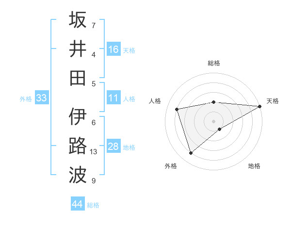 坂井田 伊路波さんを姓名の画数から五運を鑑定