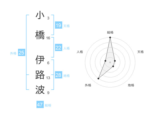 小橋 伊路波さんを姓名の画数から五運を鑑定