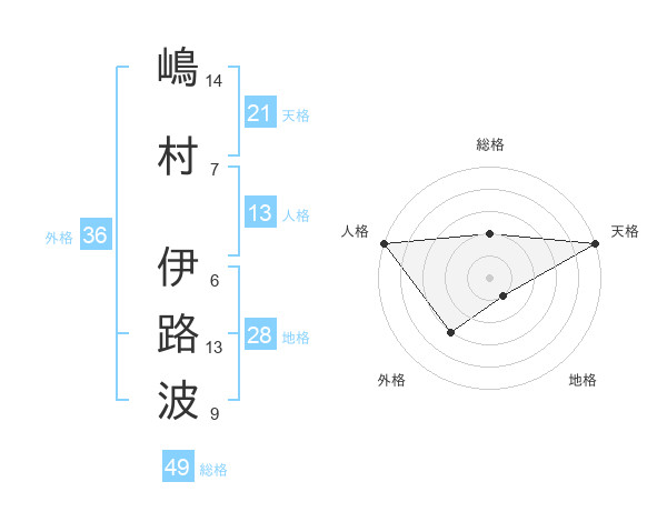 嶋村 伊路波さんを姓名の画数から五運を鑑定