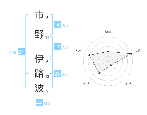 市野 伊路波さんの総格は44画の2点!