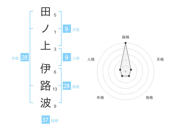 田ノ上 伊路波さんを姓名の画数から五運を鑑定