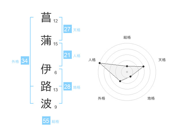 菖蒲 伊路波さんの天格は27画の3点!