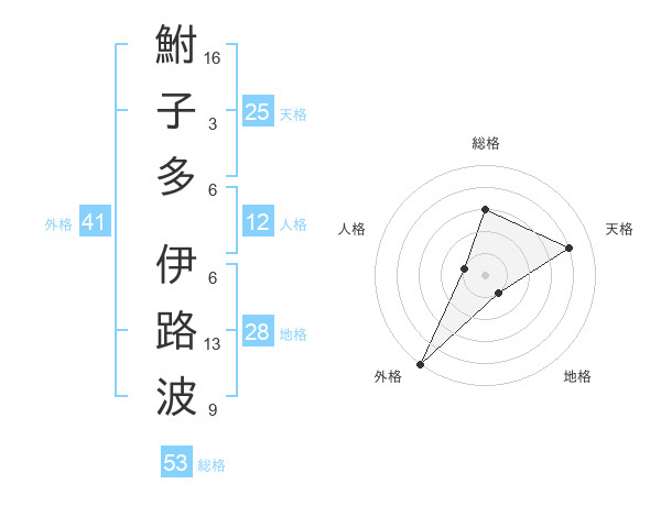 鮒子多 伊路波さんを姓名の画数から五運を鑑定