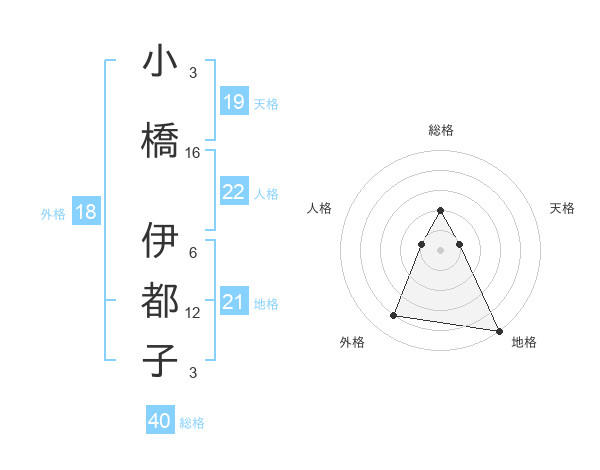 小橋 伊都子さんの天格は19画の1点!