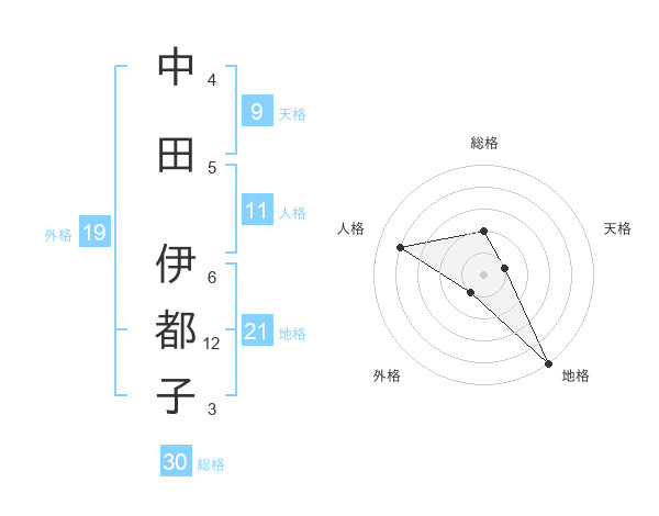 中田 伊都子さんを姓名の画数から五運を鑑定