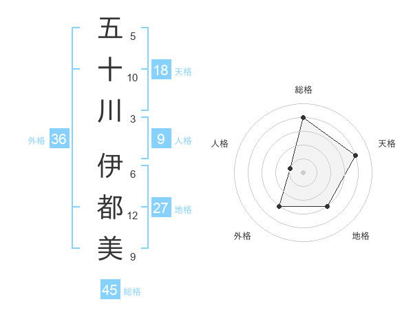 五十川 伊都美さんを姓名の画数から五運を鑑定