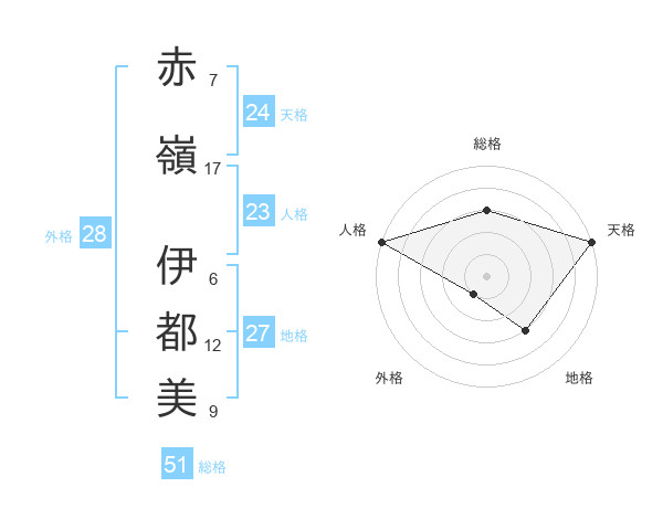 赤嶺 伊都美さんの総格は51画の3点!