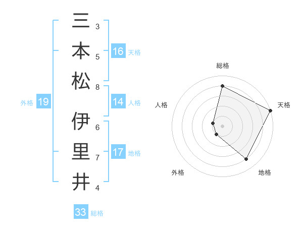 三本松 伊里井さんを姓名の画数から五運を鑑定