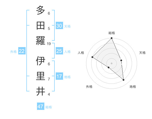 多田羅 伊里井さんを姓名の画数から五運を鑑定