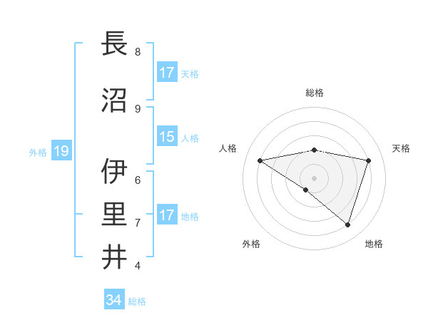長沼 伊里井さんの総格は34画の2点